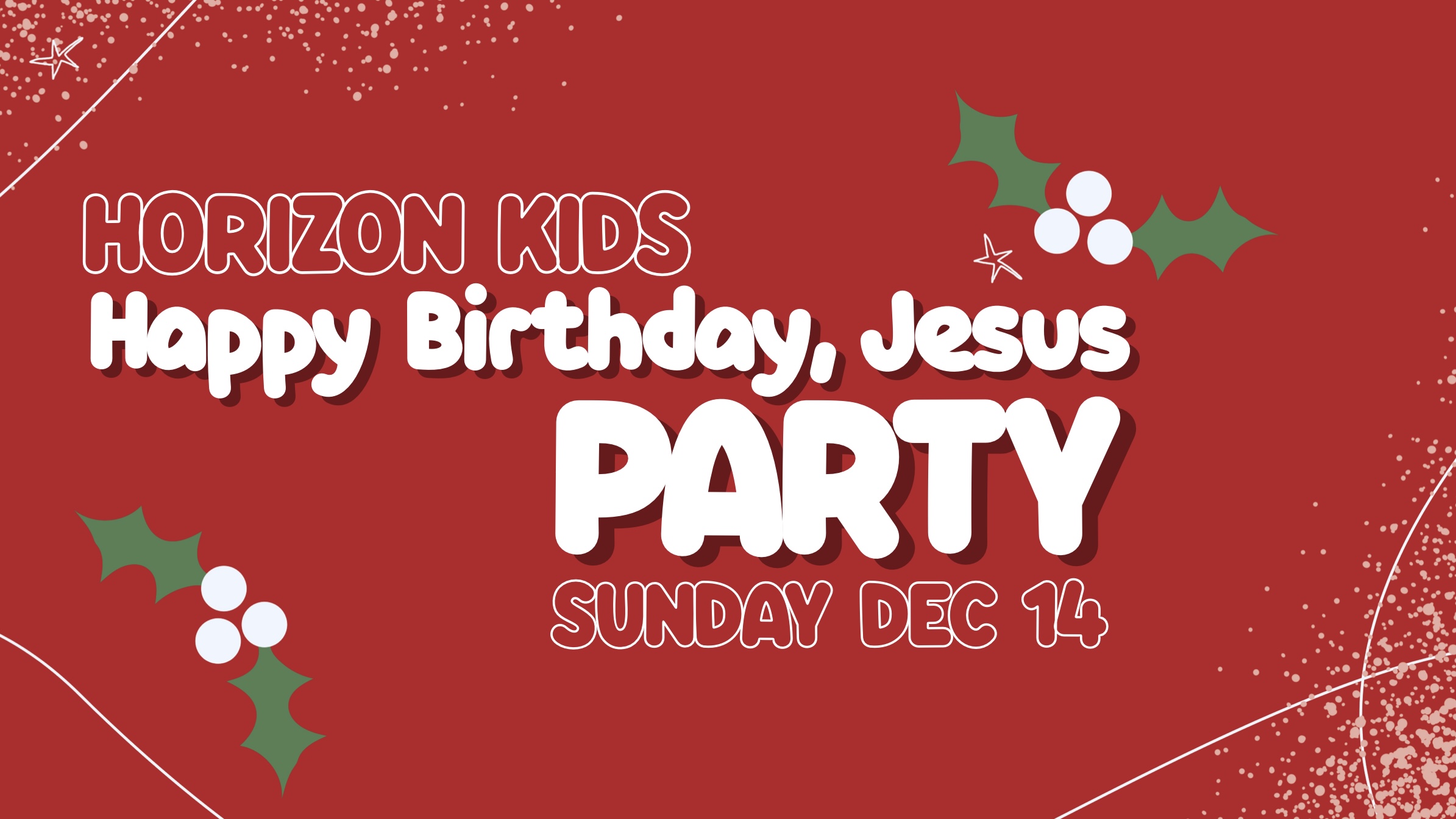 Join us for “Happy Birthday, Jesus” parties in Horizon Kids as our children celebrate Christmas with games, crafts, Christmas fun, and a skit in Kids Church.